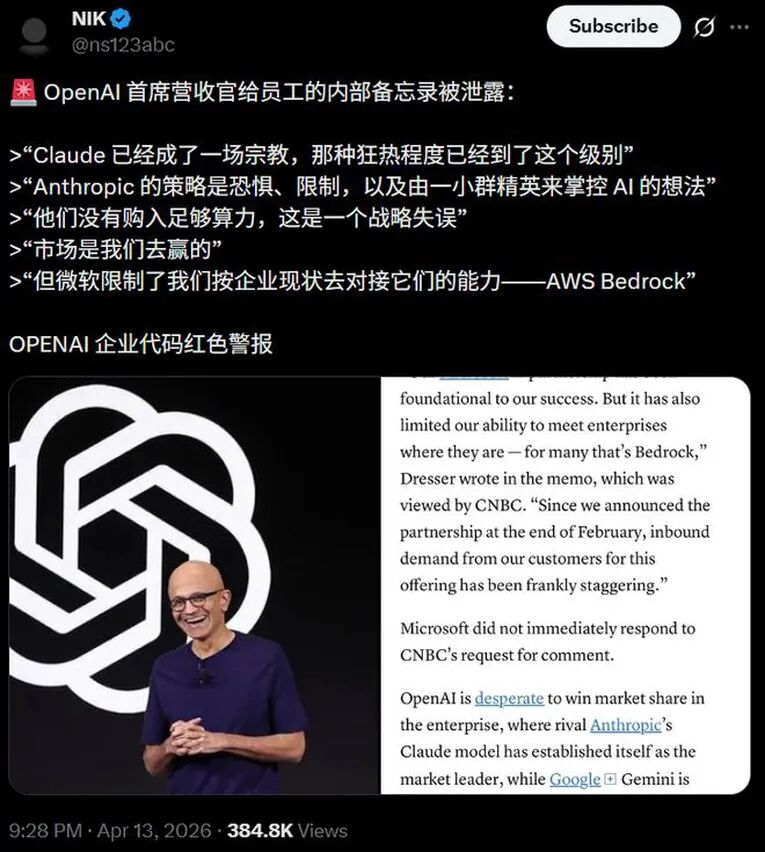 3-1. OpenAI急眼了!四页密信怒撕Claude,80亿营收全掺水