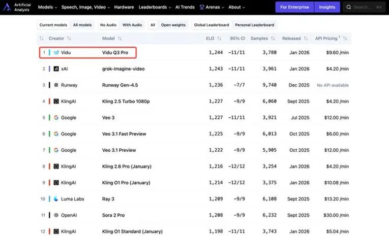 1-2. 全球AI双榜第一!力压谷歌Veo与Grok,Vidu Q3「参考生」之王归来