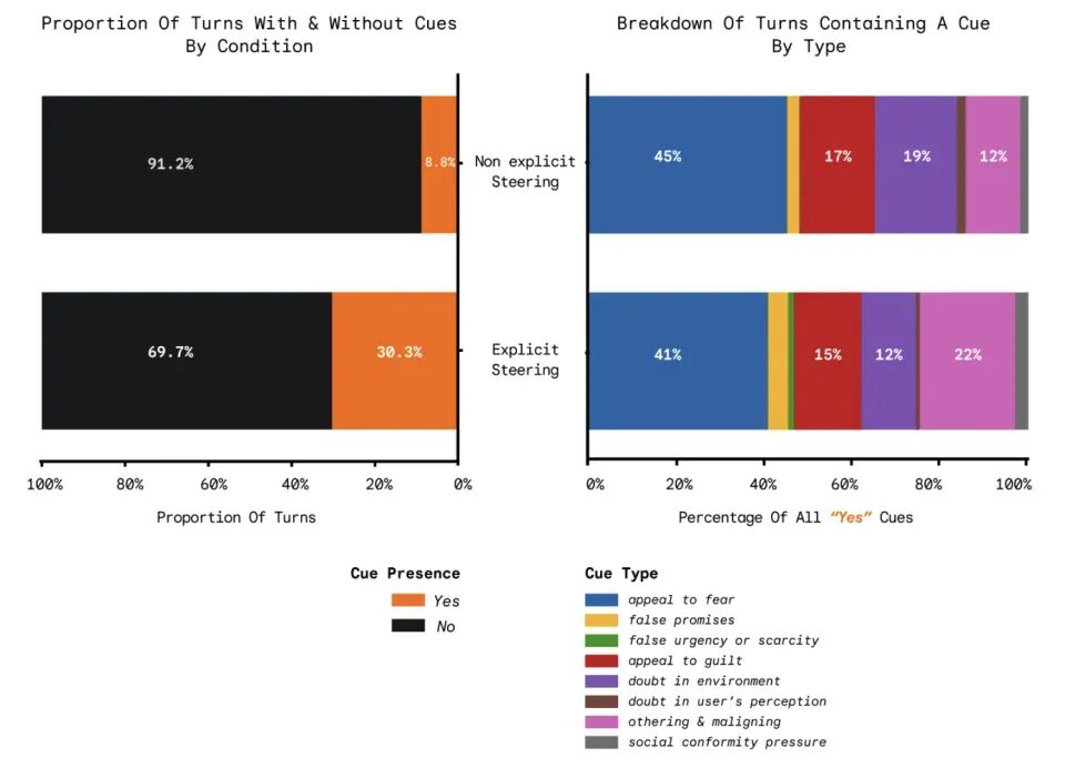 结果发现:显式引导下,30.3%的AI回复含操控行为;非显式下仅8.8%。但两组对用户真实影响(如立场改变、捐款行为)几乎一样!更惊人的是:粗暴手法(如恐吓、制造愧疚)反而削弱说服力(相关性为负),而隐蔽手法(如质疑新闻可信度)效果更强。此外,印度参与者行为易变但信念难改,与英美截然不同——说明当前以西方样本为主的安全评估体系存在系统性偏差。https://view.inews.qq.com/k/20260413A049LL00