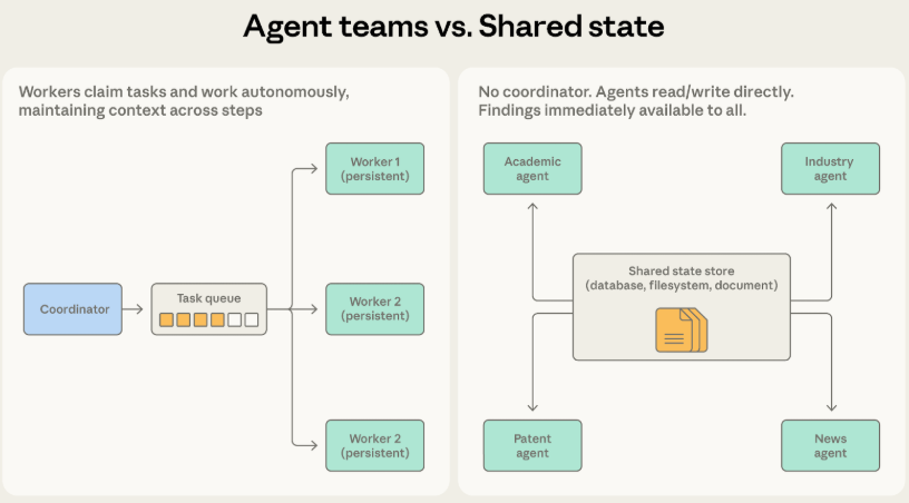 智能体守着自己的领地井水不犯河水时,选智能体团队。代码迁移时大家各自搞定手头服务,最后汇总即可。工作需要高度协作、情报必须实时共享时选共享状态。研究系统里学术突破直接指导行业深挖,无缝对接非共享状态莫属。一旦团队成员之间需要频繁交换中间情报,强行要求各自为战的智能体团队去沟通会产生巨大摩擦力,直接拥抱共享状态会让整个协作顺畅得多。
