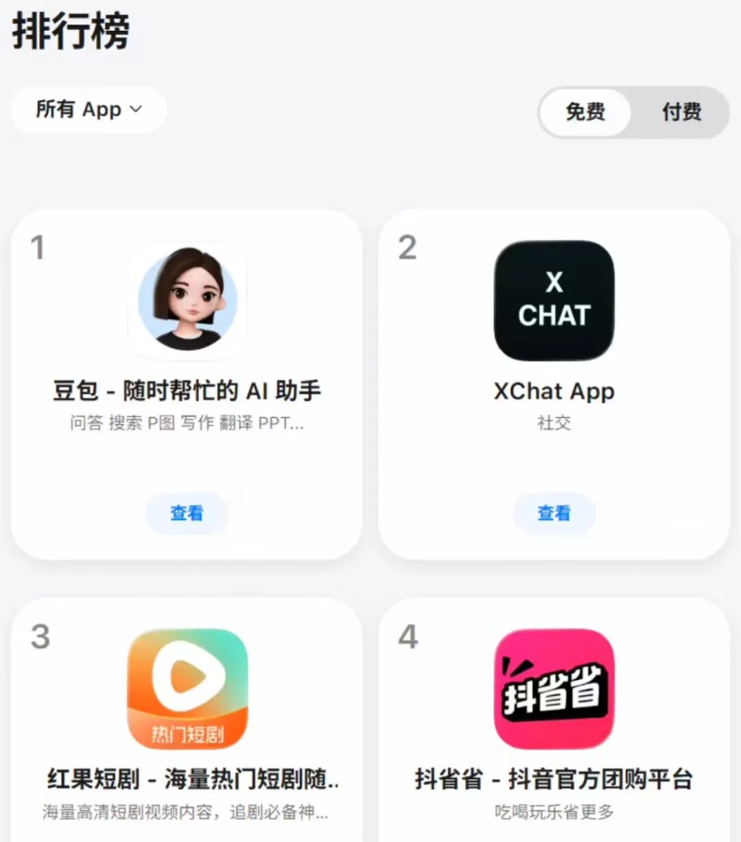 这一消息一出,关于「马斯克版微信」的讨论瞬间引爆各个社交平台,甚至让盗版「XChat App」直接冲到了苹果 App Store 国区应用商店免费榜第二,仅次于豆包。