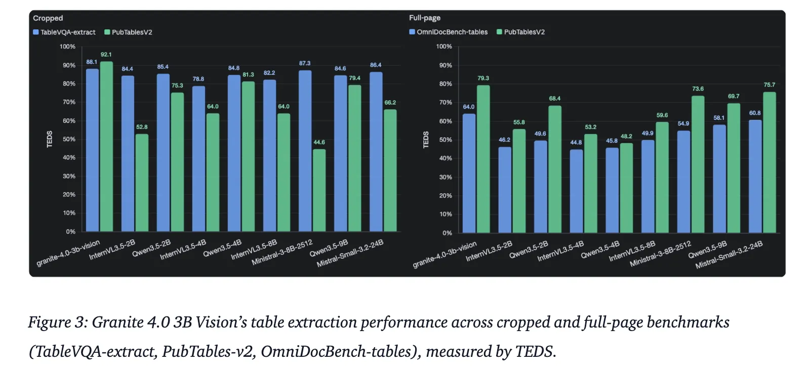 In technical evaluations, Granite 4.0 3B Vision has been benchmarked against several industry-standard suites for document understanding. It is important to note that datasets like