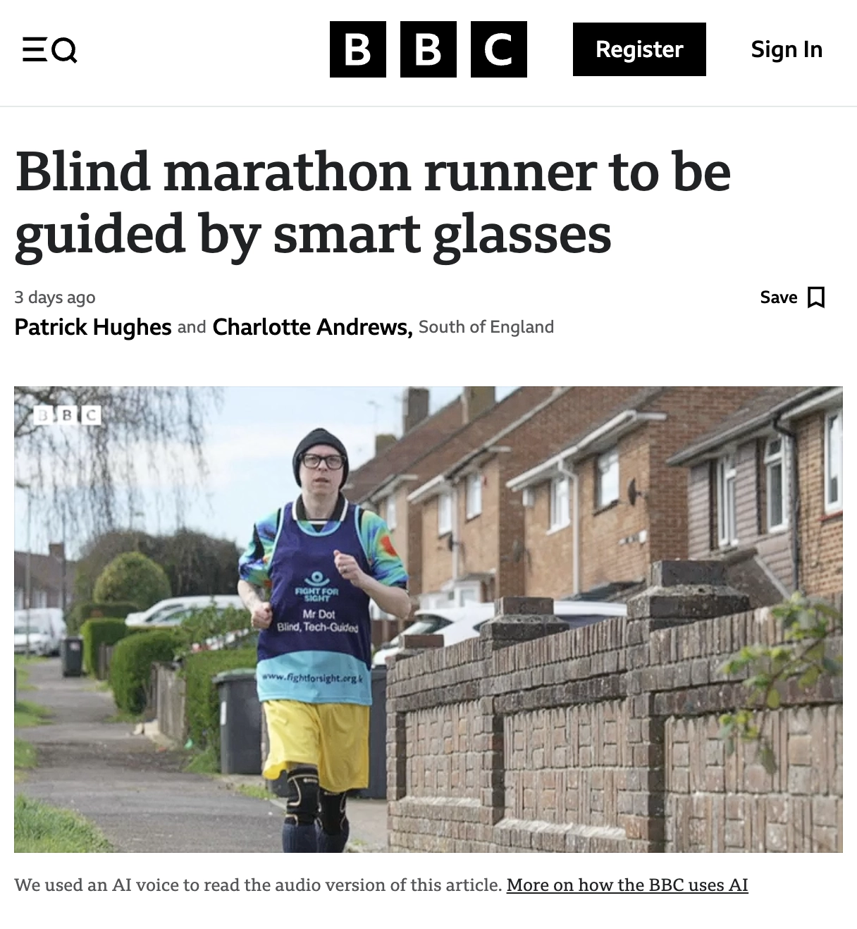 英国视障跑者挑战马拉松,将借助智能眼镜“看”到赛道、辨别方向