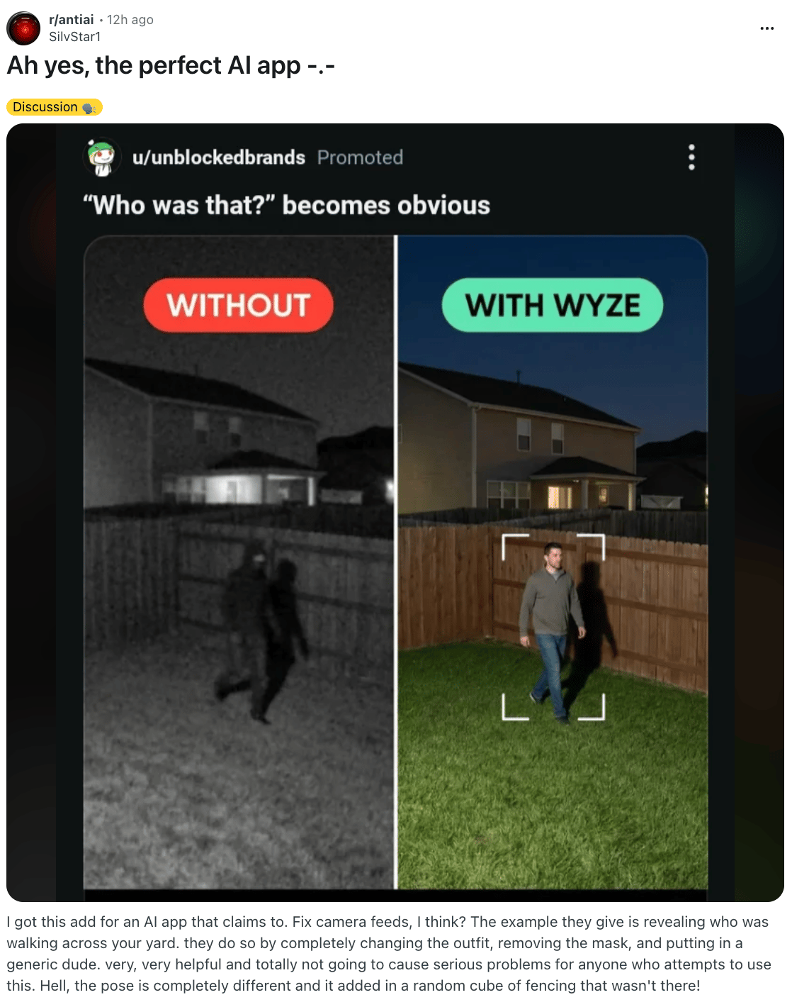 Your AI security cam caught an intruder! Oh, never mind. Thanks to AI, nothing looks sus. Cue Billie Eilish: “I'm the bad guy, duh.” 🤣