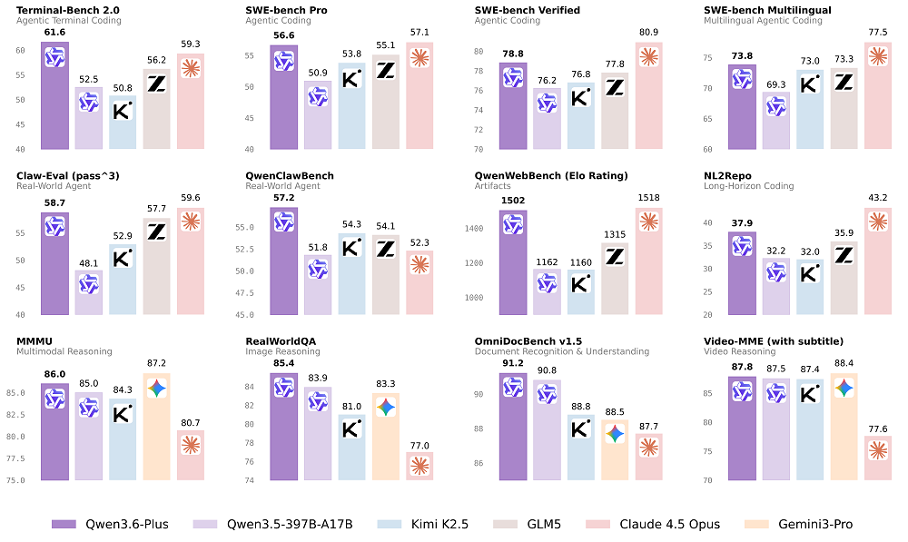 Qwen 3.6-Plus 的特别之处在于,双线并行的格局首次在国产模型中出现。过往国产模型往往只在某一维度上突出,能写代码但决策弱,能规划但执行崩,但工业级 Agentic Coding 需要的恰恰是二者兼具。Qwen 3.6-Plus 做到了这一点,在编程智能体和复杂流程决策两条战线上同时逼近第一梯队: