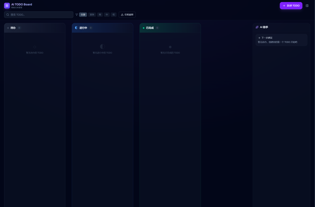 任务:开发一个 **AI TODO Board**,让用户通过自然语言创建 TODO,在看板中管理状态,并通过 AI 风格能力自动拆解子任务、识别优先级、提示风险和下一步动作。