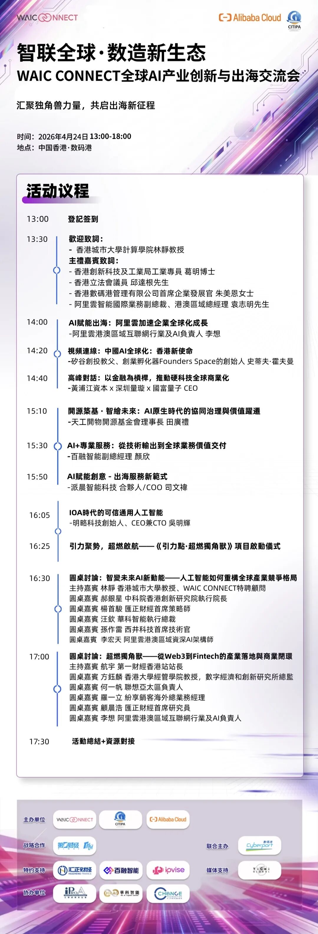🔗 政产学研投全阵容齐聚:香港创新科技及工业局、立法会、数码港、阿里云、中科院香港创新研究院、香港城市大学、香港大学、黄浦江资本、华科智能、西井科技、联想、纷享销客等机构高层与专家出席,打造高规格产业交流平台。