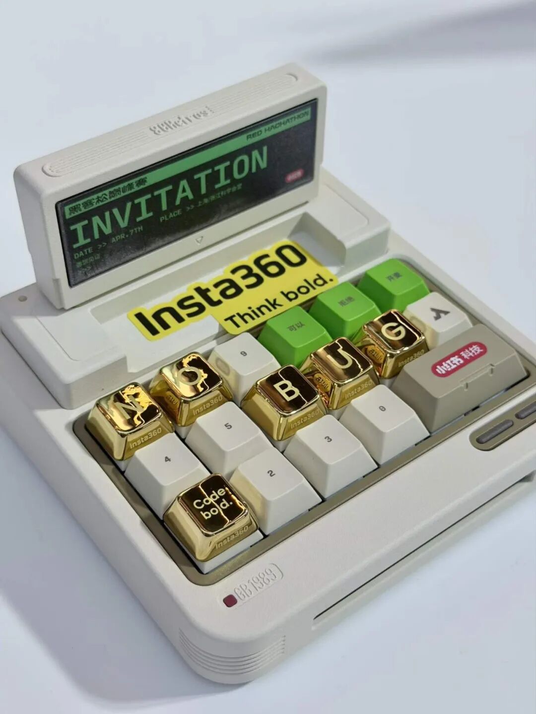 创始人刘靖康最近在上海一场黑客松上做了一件有意思的事。影石每年 1024 程序员节有个内部传统:给最优秀的工程师发纯金打造的键帽,回车键或者空格键,大约 30 克纯金。这次刘靖康第一次把黄金键帽发给了外部的获胜开发者,希望拿到键帽的人把它们拼在一起,拼出一个词:NO BUG