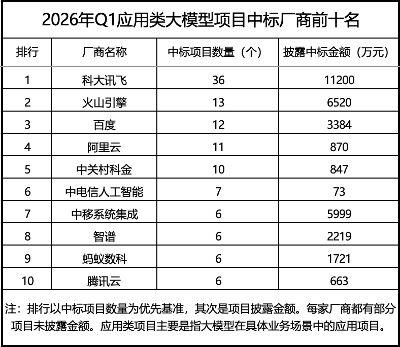 中国大模型中标项目监测与洞察报告(2026年Q1)