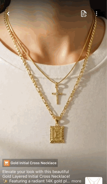 这是一个 TikTok 上的真实带货视频,产品细节、佩戴效果、购物车链接,全都有。