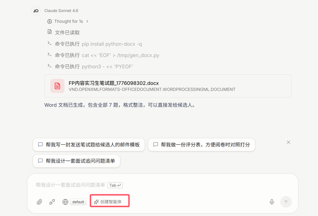 大多数用户对 agent 是没有概念的,他可能听过这个词,但不知道它是什么,也不知道该如何创建一个 agent。所以我们的产品逻辑是:你只是在完成一个当下的任务,比如你是一个知识工作者,在处理一个法律文件,写了一份分析报告,结果很好。