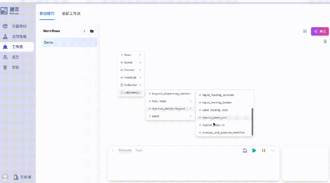 目前,玻尔・跃迁实验室已接入 1800 余种仪器设备型号,支持远程操控,覆盖设备连接、实验执行、流程编排、AI-Ready 数据输出和云 CAD 仿真规划等环节,试图为干湿闭环智能实验室搭建起一套可复现、可计算、可扩展的运行底座。