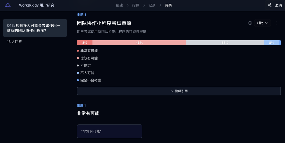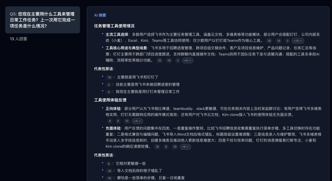 当然,如果放在更高要求的研究场景里,它未必能替代资深研究员的判断;但如果把它看成一个“把用户研究的最后一公里做产品化”的工具,那它已经展现出了相当清晰的产品价值。