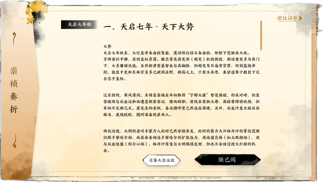但在国内首款 AI 原生历史策略游戏《历史模拟器:崇祯》中,玩家可以完全天马行空地推行激进改革、周旋各方势力,甚至有深度玩家大搞现代工业,发展铀浓缩,研发原子弹……创建无限的支线可能。