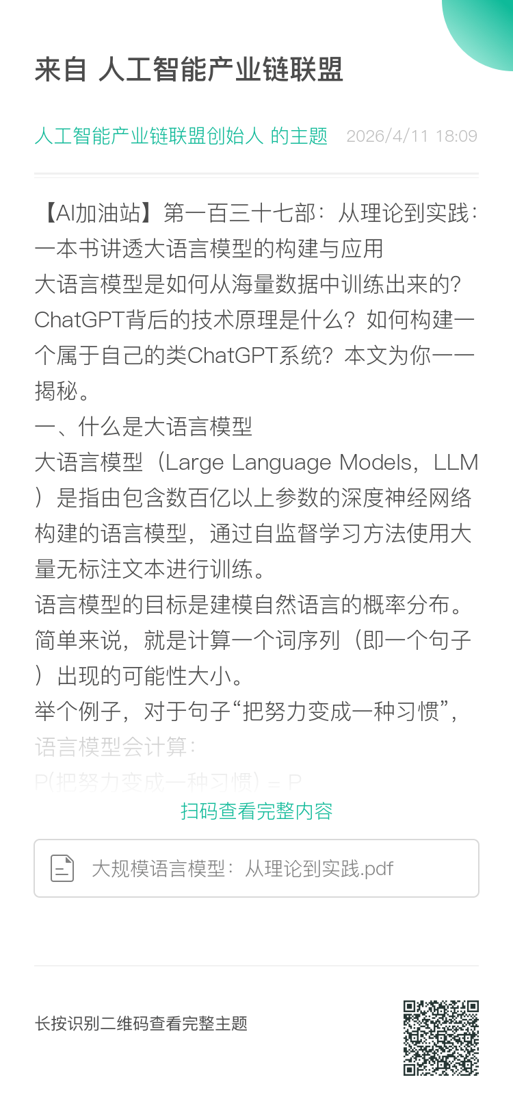 【AI加油站】第九部:《Python深度学习(中文版)》(附下载)【AI加油站】第十二部:《从零开始的机器学习》(附下载)【AI加油站】第十三部:《Transformer入门到精通》(附下载)【AI加油站】第十四部:《LLM 应用开发实践笔记》(附下载)【AI加油站】第十五部:《大模型基础 完整版》(附下载)【AI加油站】第十六部:《从头训练大模型最佳实践》(附下载)【AI加油站】第十八部:《深度强化学习》(附下载)【AI加油站】第十九部:清华大学《大模型技术》(附下载)【AI加油站】第二十部:Prompt入门神书-《Prompt 学习指南》(附下载)【AI加油站】第二十一部:吴恩达&open AI联合推出《大模型通关指南》(附下载)【AI加油站】第二十二部:《李宏毅深度学习教程》值得反复阅读的神书!(附下载)【AI加油站】第二十三部:Prompt经典中文教程-《提示工程指南》(附下载)【AI加油站】第二十四部:爆火下载28万次!MIT最新神书《理解深度学习》(附下载)【AI加油站】第二十五部:LLM4大名著,OpenAI专家强推《深度解析:大语言模型理论与实践》(附下载)【AI加油站】第二十六部:NLP大牛Thomas Wolf等新书《Transformer自然语言处理》(附下载)【AI加油站】第二十七部:哈工大博士耗时一年整理《PyTorch常用函数手册》,轻松掌握PyTorch的各种操作(附PDF下载)【AI加油站】第二十八部:大模型炼丹大师必备《深度学习调优指南中文版-系统性优化模型》(附下载)【AI加油站】第二十九部:炸裂发布!《大语言模型:导论》重磅发布!(附下载)【AI加油站】第三十部:最值得读的LLM书!下载量10w+!《基于Transformer和扩散模型的生成式AI》(附下载)【AI加油站】第三十一部:RL稀缺宝典!《强化学习的艺术》(附下载)【AI加油站】第三十二部:一本醍醐灌顶的教科书!《大语言模型提示工程:构建LLM应用的艺术与科学》(附下载)【AI加油站】第三十三部:机器学习好评榜第一《机器学习基础》(附下载)【AI加油站】第三十四部:所有大模型领域学习者必读,没有之一!由深度学习三巨头联合撰写!(附下载)【AI加油站】第三十五部:{AI炼丹神书}——从0到1榨干深度学习模型每一滴性能的终极战术手册《深度学习调优指南》(附下载)【AI加油站】第三十六部:面向生产环境的大型语言模型实战手册《LLM 大语言模型构建指南》(附下载)【AI加油站】第三十七部:《深度学习的数学导论:方法、实现与理论》从神经网络架构到物理信息模型的全景综述(附下载)【AI加油站】第三十八部:下载量10w+!《大型语言模型:语言理解和生成》从文本分类到主题建模的实战指南(附下载)【AI加油站】第三十九部:包教包会!《从零开始构建大语言模型的关键要点》大模型训练全景指南:从0到1的系统性最佳实践(附下载)【AI加油站】第四十部:《大规模机器学习训练工程实战手册》——从硬件选型到故障恢复的系统性指南(附下载)【AI加油站】第四十一部:《ChatGPT后训练全景解析:技术演进、核心挑战与未来方向》(附下载)【AI加油站】第四十二部:《百页机器学习书》:从算法到实战的全景指南(附下载)【AI加油站】第四十三部:《掌握大语言模型》核心知识速览:从NLP基础到LLM前沿实践(附下载)【AI加油站】第四十四部:《精通PyTorch》-从CNN到Transformer、LLM、GNN的端到端实战图谱(附下载)【AI加油站】第四十五部:《图神经网络导论》-全景拆解:从数学基石到落地应用的知识地图(附下载)【AI加油站】第四十六部:谷歌大佬编写,我唯一熬夜看完的机器学习神作《机器学习:概率视角》(附下载)【AI加油站】第四十七部:复旦大学张奇老师《自然语言处理导论》(附下载)【AI加油站】第四十八部:Github持续霸榜!「Leetcode刷题笔记」解题思路/代码/模板开放下载!(附下载)【AI加油站】第四十九部:下载10W+爆火神书《基于LangChain进行生成式AI开发》(附下载)【AI加油站】第五十部:打破 “AI 神话”!《AI 3.0 》剖析机器智能的真实能力,探讨人机共生的未来图景(附下载)【AI加油站】第五十一部:从 PGC 到 AIGC:内容生产的颠覆性革命,一文看透智能创作如何重塑经济与社会(附下载)【AI加油站】第五十二部:《人工智能简史》穿越 AI 百年:从 “机器替代” 到 “人机共生” 的技术革命与人性思考(附下载)【AI加油站】第五十三部:智能无疆:《人工智能:现代方法(第 4 版)》全景解读(附下载)【AI加油站】第五十四部:《深度学习革命》从学术寒冬到全球科技争霸的十年史诗(附下载)【AI加油站】第五十五部:《生命 3.0》人工智能时代的进化史诗与未来抉择(附下载)【AI加油站】第五十六部:《我看见的世界-李飞飞自传》从移民少女到 AI 先驱:李飞飞与 ImageNet 的破晓之路(附下载)【AI加油站】第五十七部:《智人之上》解码从石器时代到 AI 时代的信息网络密码(附下载)【AI加油站】第五十八部:《千脑智能》解锁智能本质:从千脑智能理论到人类与 AI 的未来图景(附下载)【AI加油站】第五十九部:《AI极简经济学》解锁 AI 商业价值:从预测核心到战略重构的极简经济学指南(附下载)【AI加油站】第六十部:深入探索《人工智能哲学》:从理论根基到核心争议与未来展望(附下载)【AI加油站】第六十一部:解构 《人类 2.0》:硅谷视角下科技重塑未来的全景蓝图(附下载)【AI加油站】第六十二部:以逻辑、艺术与音乐为钥,解锁思维本质的奇书 ——《哥德尔、艾舍尔、巴赫》(附下载)【AI加油站】第六十三