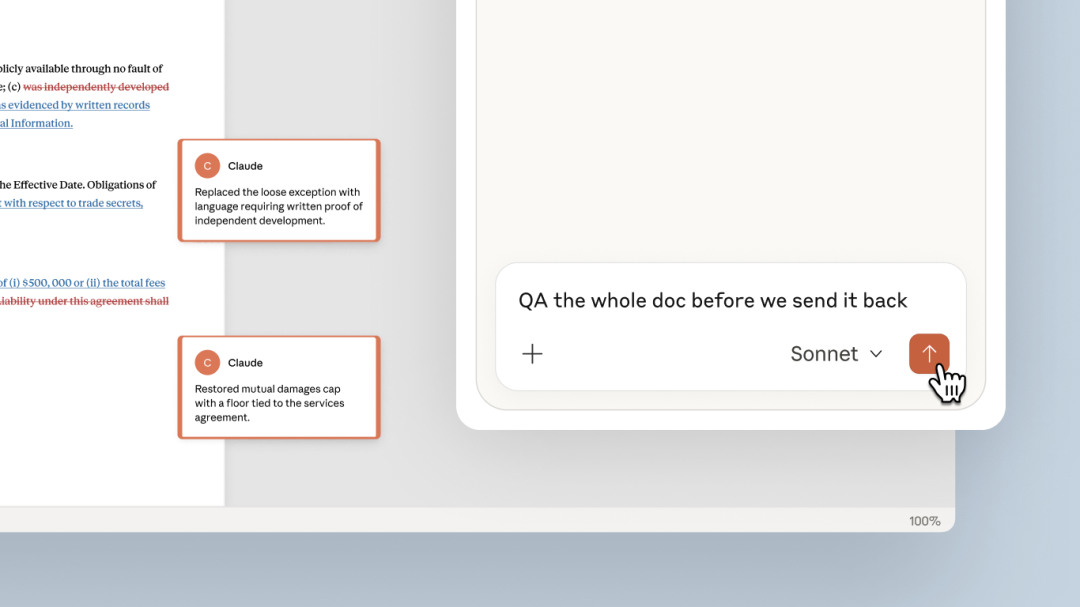 在文档里用 Word 批注写修改意见,Claude 读取所有批注,逐条改对应段落,并在批注串里回复它做了什么
