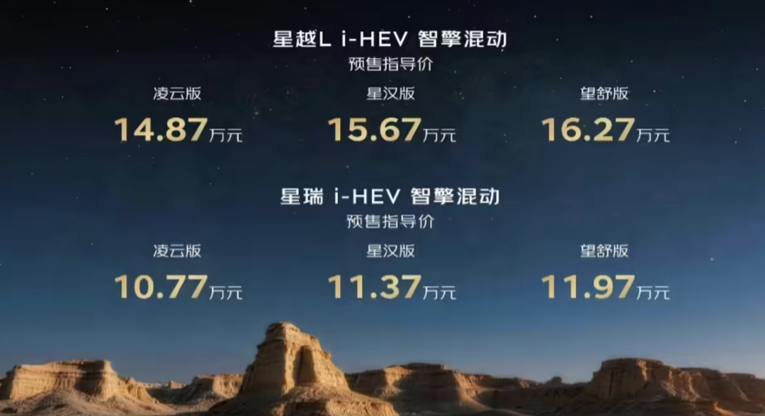 吉利星越 L、星瑞 i-HEV 智擎混动开启预售,限时价 10.27 万元起