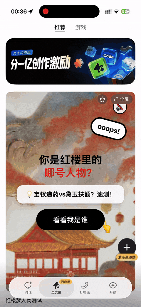 然后今天灵光圈上线了,着眼于 APP 日抛、Feed 分发