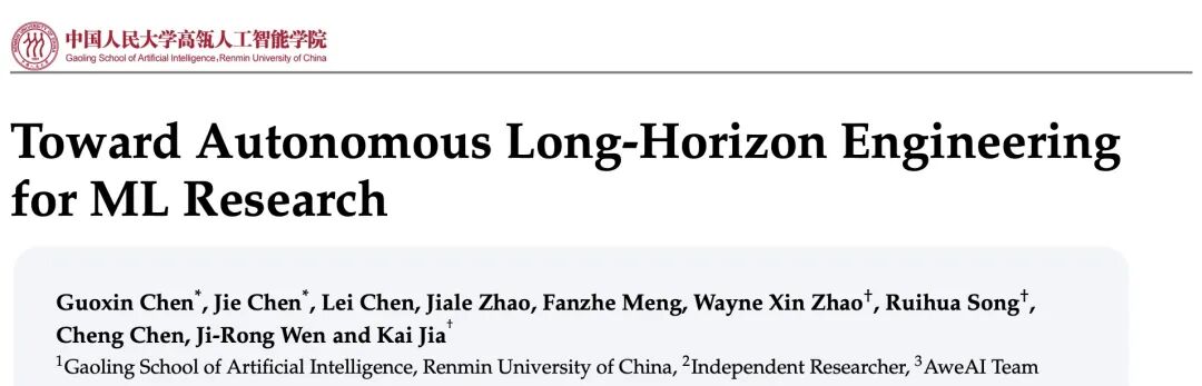 近日,中国人民大学高瓴人工智能学院提出了一个名为 AiScientist 的系统,尝试解决这一设定:long-horizon ML research engineering。
