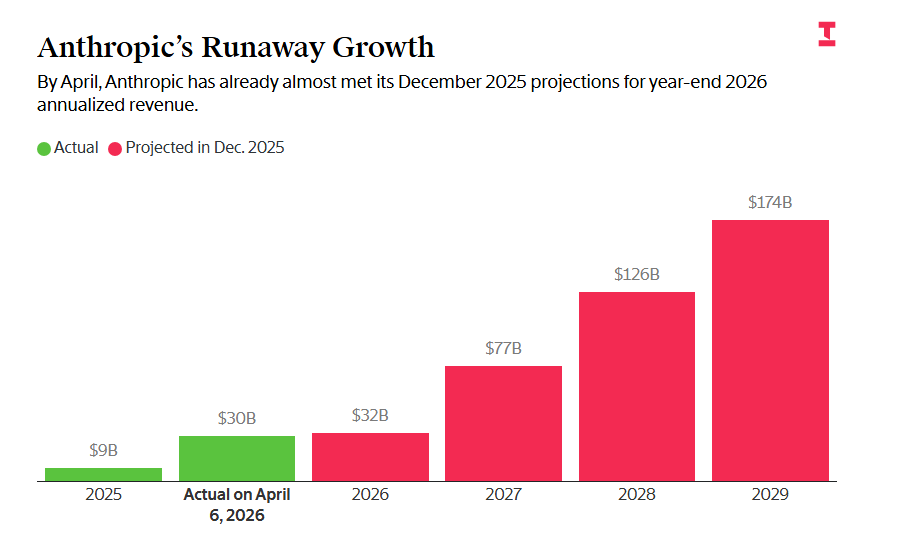 截至2026年4月,Anthropic的年化营收达到300亿美元