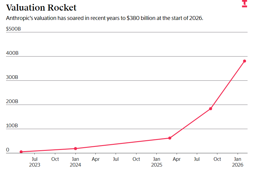 2026年初,Anthropic估值飙升至3800亿美元