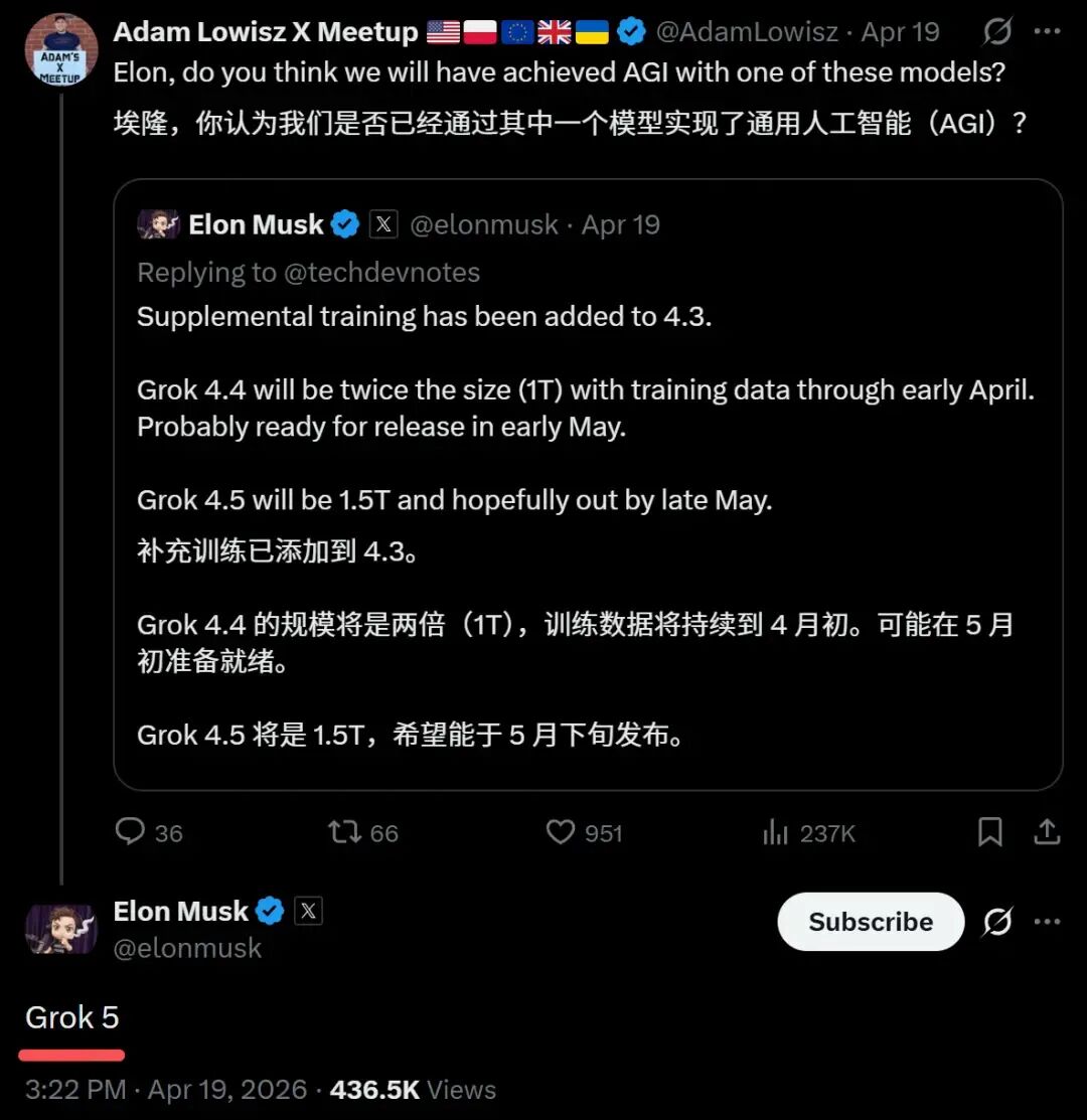 1-2. 马斯克暴走官宣:Grok 5就是AGI!五月连轰两代万亿怪兽,OpenAI慌了