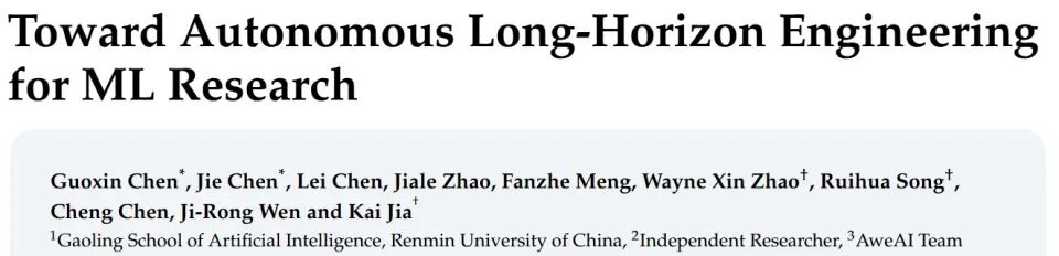中国人民大学团队推出的AiScientist,是一个面向“长程机器学习科研工程”的自动化系统,旨在让AI真正接手而非仅辅助整个研究流程。它不满足于单点能力(如写代码或读论文),而是打通从论文理解、环境配置、代码实现、实验运行,到结果分析、错误归因与反复优化的全链条。