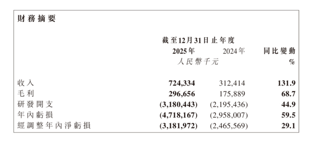 但魔幻现实接踵而至:2025年营收7.24亿元(同比+131.9%),净亏损却高达47.18亿元(同比扩大59.5%);研发投入31.8亿元占收入439%,支撑起4000亿港元市值与500倍市销率。