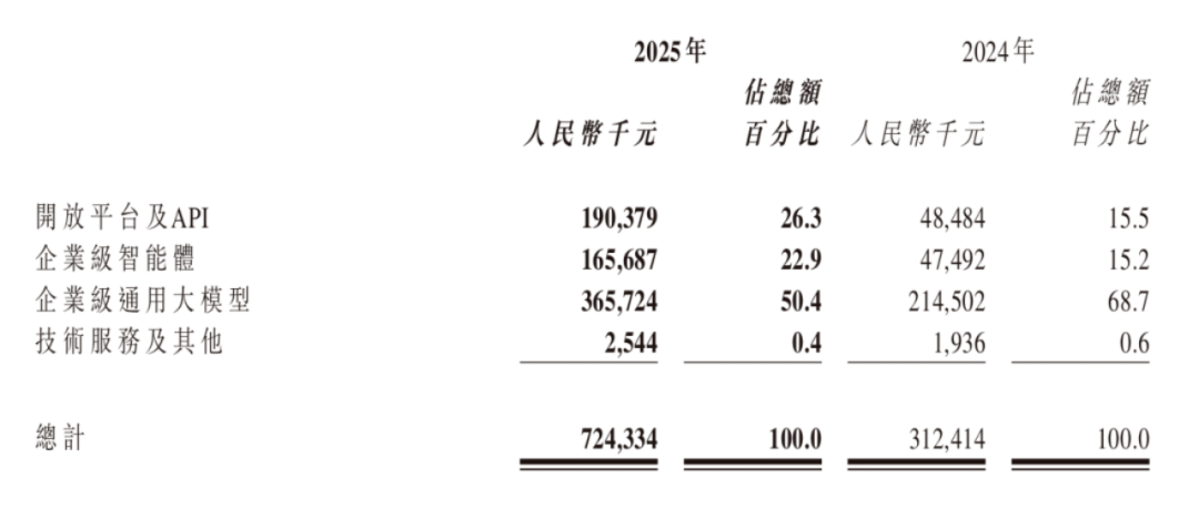 智谱的营收增长质量需要从收入结构变迁中审视。2025年,其本地化部署收入5.34亿元(占比73.7%,同比+102.3%),云端部署收入1.90亿元(占比26.3%,同比+292.6%)。表面上看,本地化部署仍是基本盘,但云端业务的爆发式增长揭示了商业模式的深层转型。