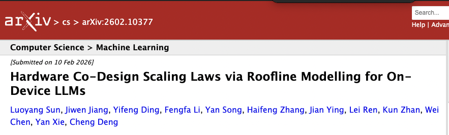(陈伟及其团队的研究成果,Hardware Co-Design Scaling Laws via Roofline Modelling for On-Device LLMs,图源:Google搜索)