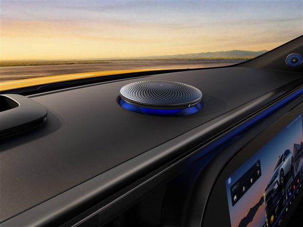 此外,该车还配备全液晶仪表盘、中控和副驾驶一体式双联屏,并匹配飞碟状悬浮式升降扬声器、7.1.4布局森海塞尔典范音响系统,还采用零压一体式运动座椅,而圆形的空调出风口以及被设置在门板上的座椅控制按键则相当有奔驰风。