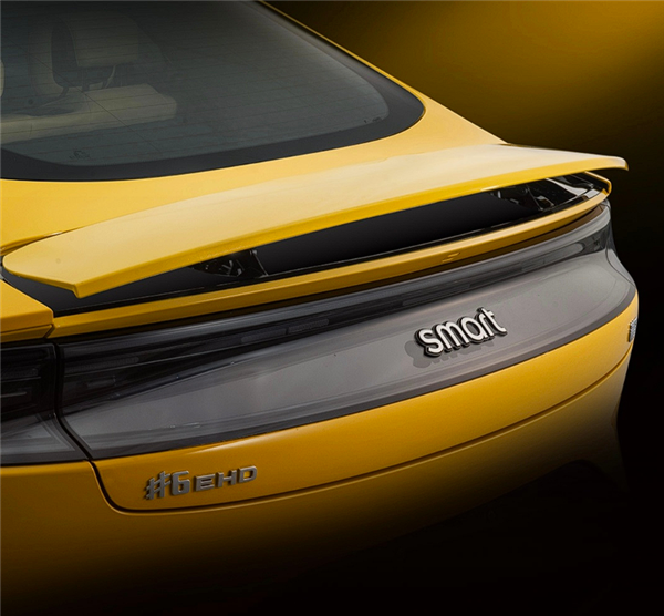 车辆尾部同样为贯穿式尾灯并融合了内凹的造型,车尾翼子板塑造出宽体的视觉效果,配合后保险杠的双拼配色,运动属性拉满,而电动尾翼打开后配合明黄色车漆,恍惚间有种小米SU7的错觉。