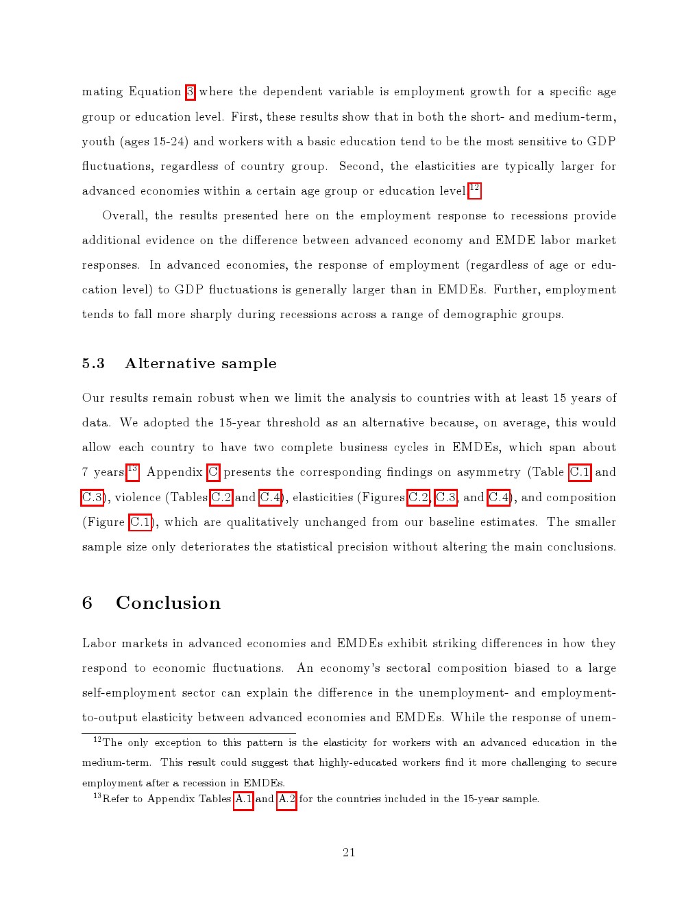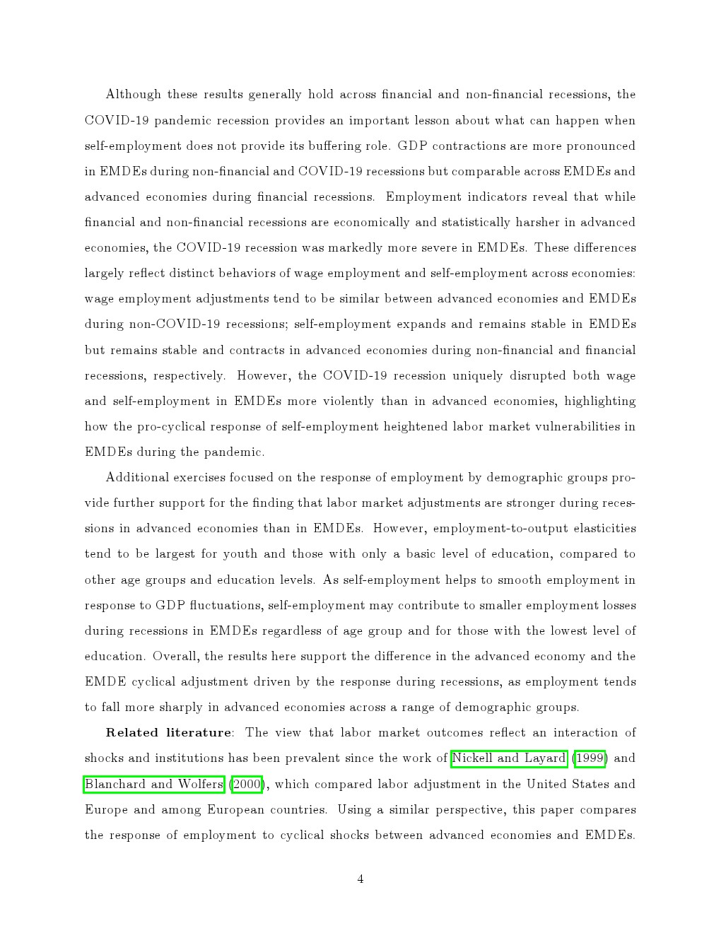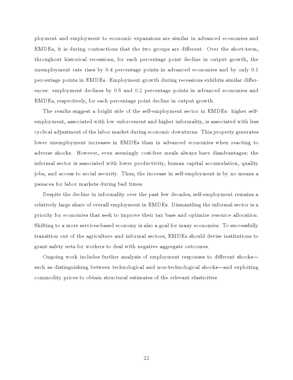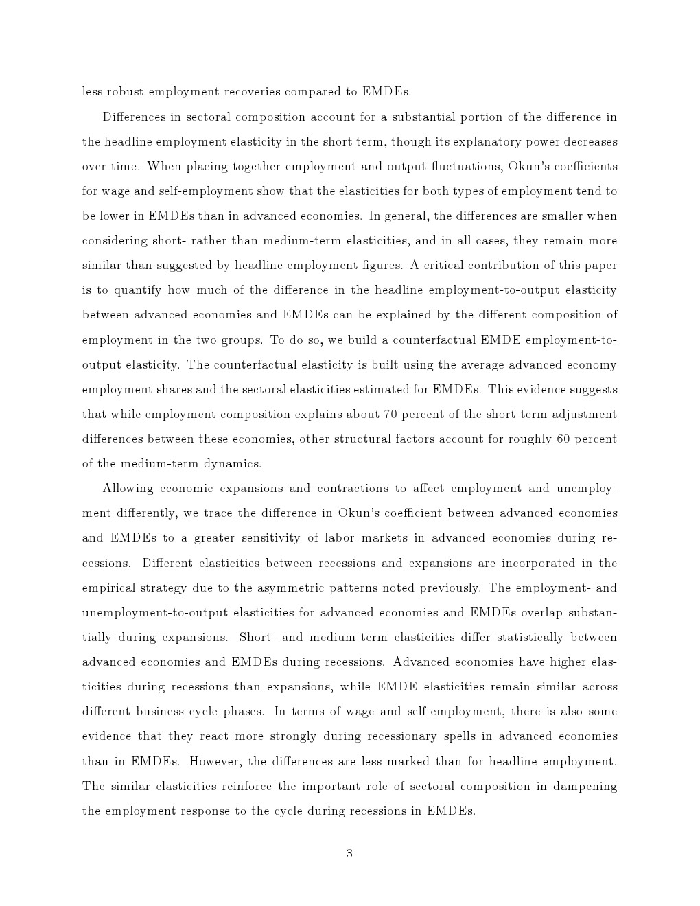 不同类型冲击提供了重要补充证据。在非金融与金融危机中,新兴经济体就业波动普遍弱于发达经济体,但疫情冲击中这一规律被打破。由于自雇与工资就业同步收缩,新兴经济体就业下滑更为剧烈,显示当“缓冲机制”失效时,其劳动力市场更易暴露系统性脆弱性。