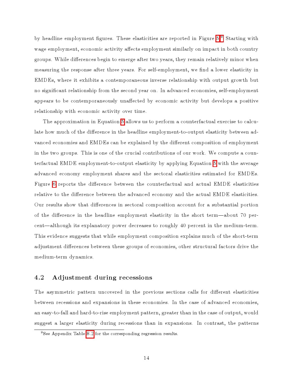 量化结果进一步强化这一判断。就业结构差异可解释约70%的短期就业弹性差异,但在中期下降至约40%,说明制度环境、金融条件等结构性因素在更长周期中发挥更大作用。同时,发达经济体就业对衰退的反应显著强于扩张阶段,而新兴经济体在不同周期阶段的弹性变化较小,体现出更对称的调整路径。
