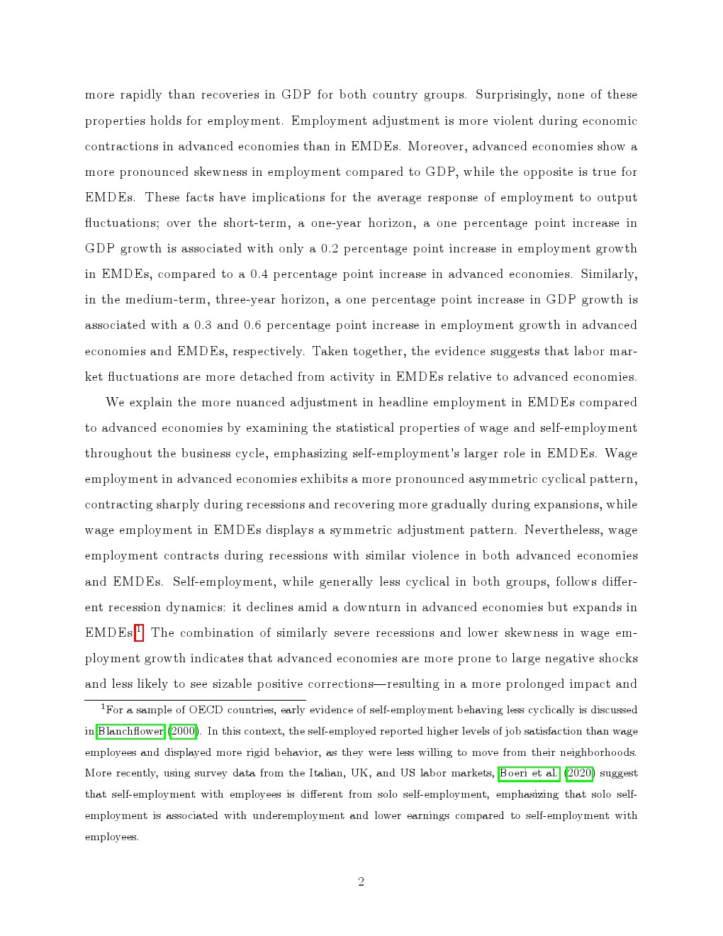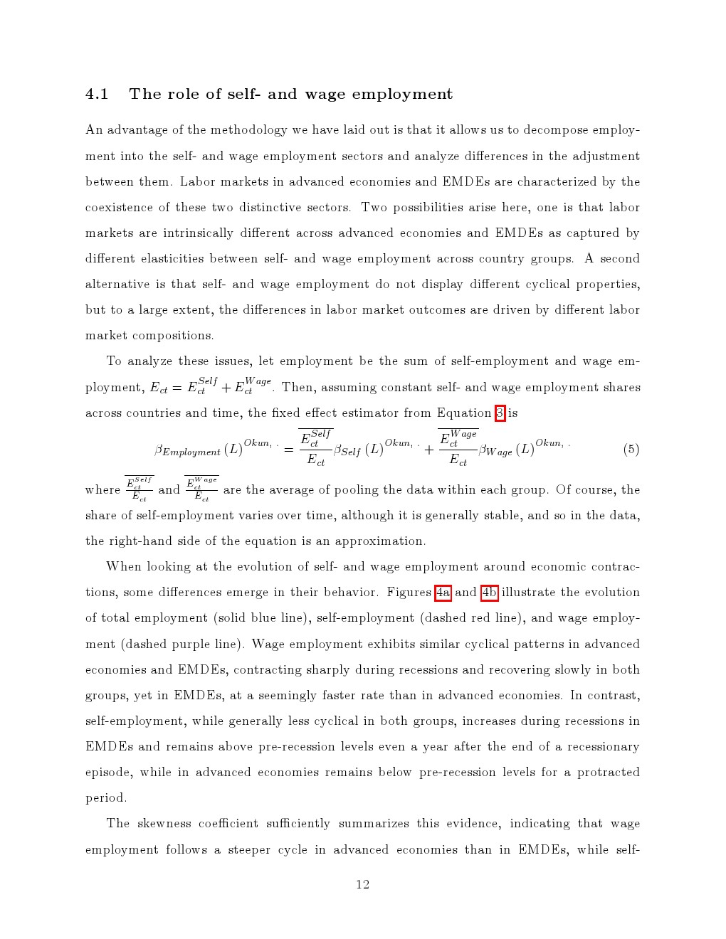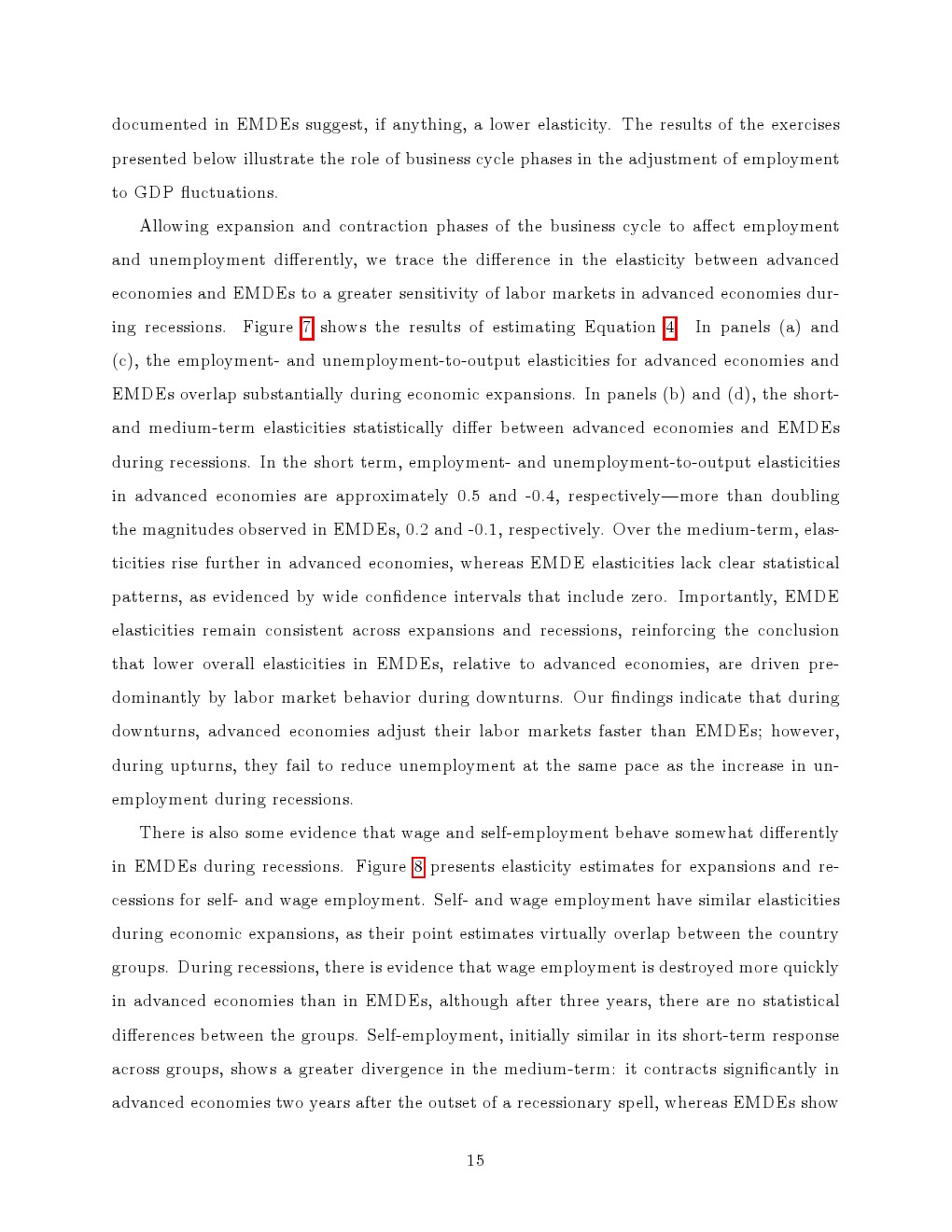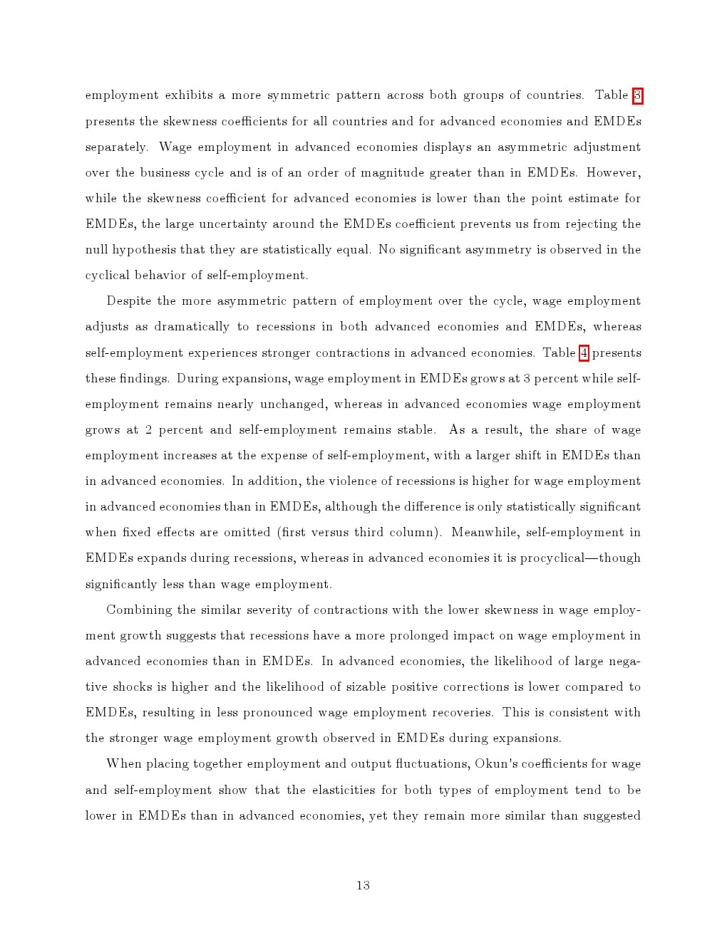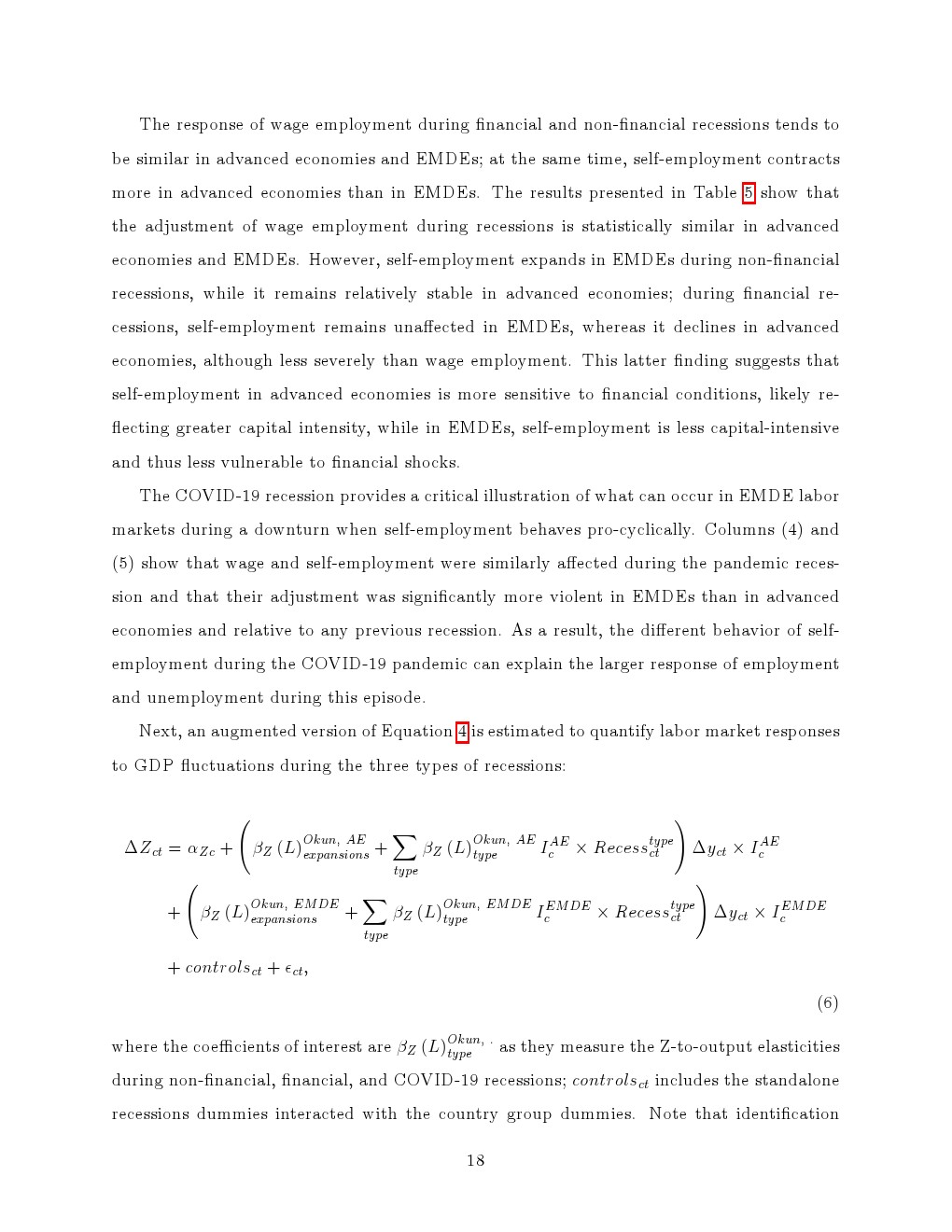 进一步分解显示,就业结构是核心解释变量。工资就业在两类经济体中均呈现显著顺周期特征,在衰退中快速收缩、复苏中缓慢回升,且发达经济体表现出更强的“非对称性”。相比之下,自雇的周期性明显更弱,在新兴经济体中甚至在衰退期逆势扩张,从而对冲了工资就业的下滑,显著平滑整体就业波动。