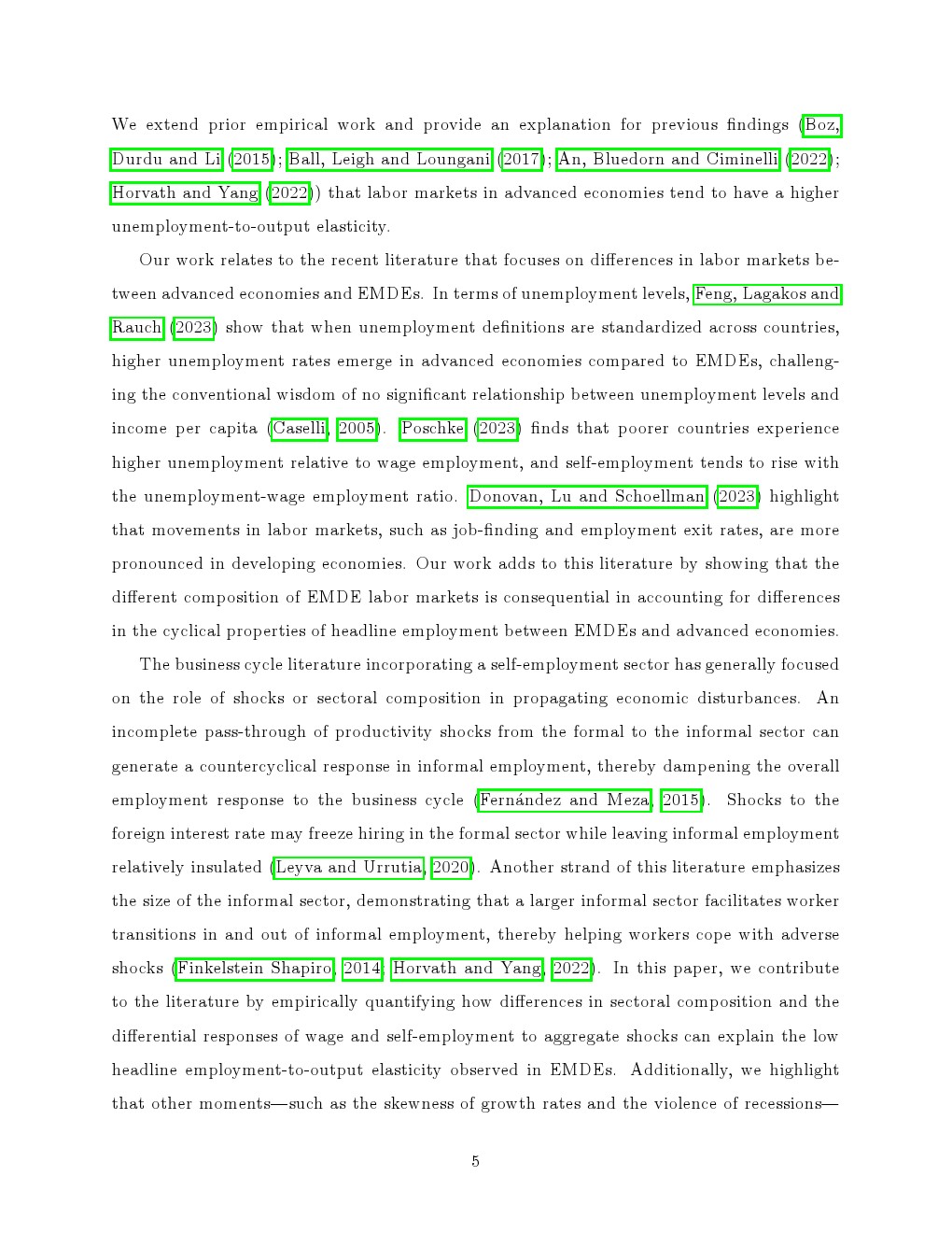 该研究以58个国家为样本,系统比较发达经济体与新兴市场在经济周期中的就业反应差异。数据显示,新兴经济体自雇占比接近发达经济体的三倍,且GDP波动更为剧烈,但就业波动却显著更温和。这一“产出更波动、就业更稳定”的反常现象,反映出劳动力结构在宏观波动中的关键缓冲作用。