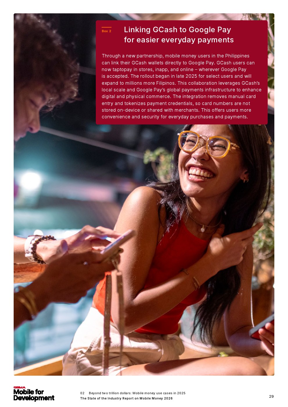 除了加速金融包容性和支持改善财务健康外,移动货币的使用还通过在危机期间(尤其是在偏远地区)实现快速支付,带来了更广泛的社会和人道主义效益。然而,为了使这些及其他用例取得成功,移动货币需要辅以数字金融素养计划,以继续在不同地区和人口群体中实现负责任的增长。
