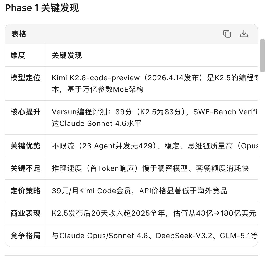 但 K2.6 有意思的地方,恰恰在于它没有只回答这个问题。