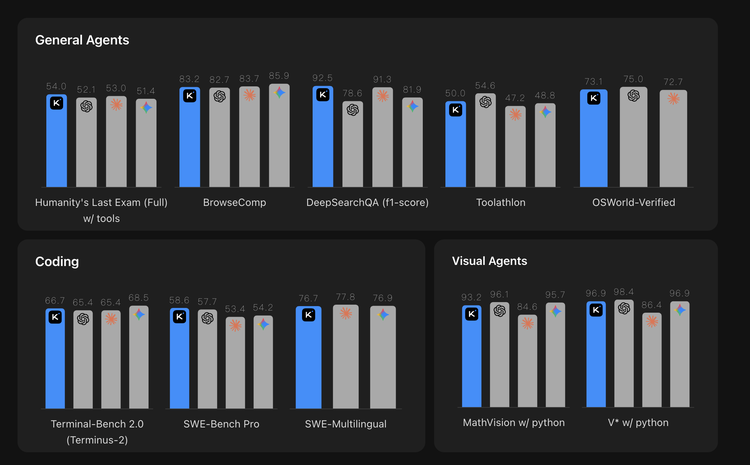 K2.5 发布时就有评测将其定位为"中国首个在前端设计和视觉理解上与 Gemini 2.5 Pro 形成真实竞争的模型",K2.6 是在此基础上的延续。