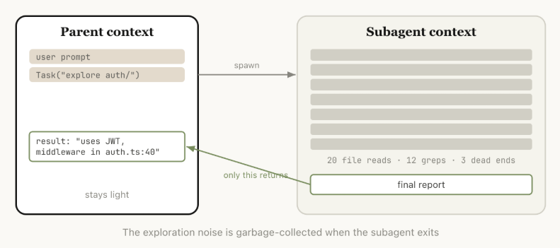 Claude通过Agent工具生成子程序时,该程序会获得一个干干净净的独立上下文窗口。它可以在独立空间里完成所有繁杂工作,最后进行综合提炼,只把一份最终报告呈递给父级主会话。