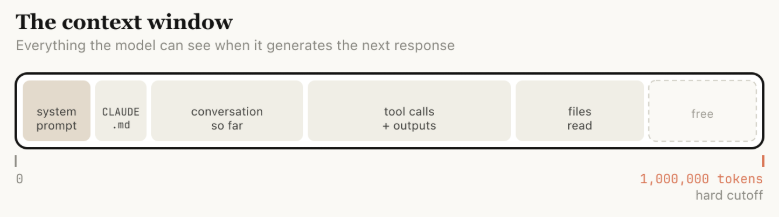 系统提示词、过往对话记录、每次工具调用过程、输出结果、所有被读取过的文件,统统堆积在广阔的存储空间里。