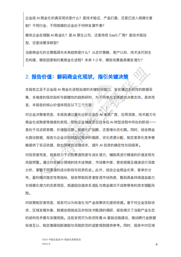 本报告基于229家企业级AI厂商的调研数据,深度解析AI在中国企业中的渗透现状、商业化路径、挑战与未来趋势,提炼出八大核心洞察,为企业、投资者与政策制定者提供决策参考。