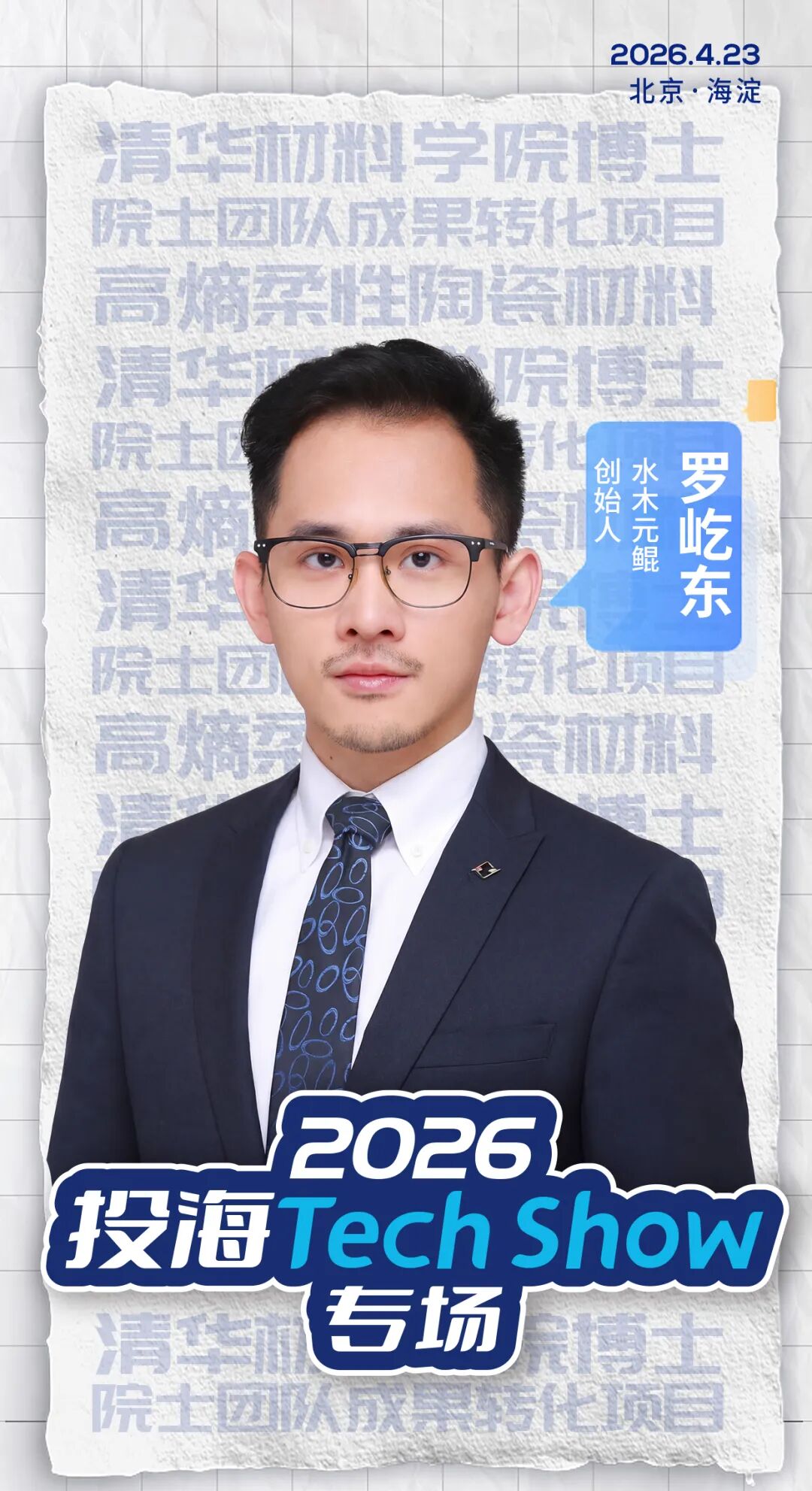 4月23日,海淀,中关村国际创新中心,让我们共赴这场科创之约,见证星火共燃,一同聆听这些新锐创始人,解锁他们深耕科创、逐梦前行的精彩故事。