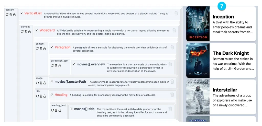 在实际工作流程中,开发者输入目标描述与参考数据后,SQUIRE 会自上而下构建 UI。在用户点击某个备选方案后,预览界面与底层代码会同步实时更新。