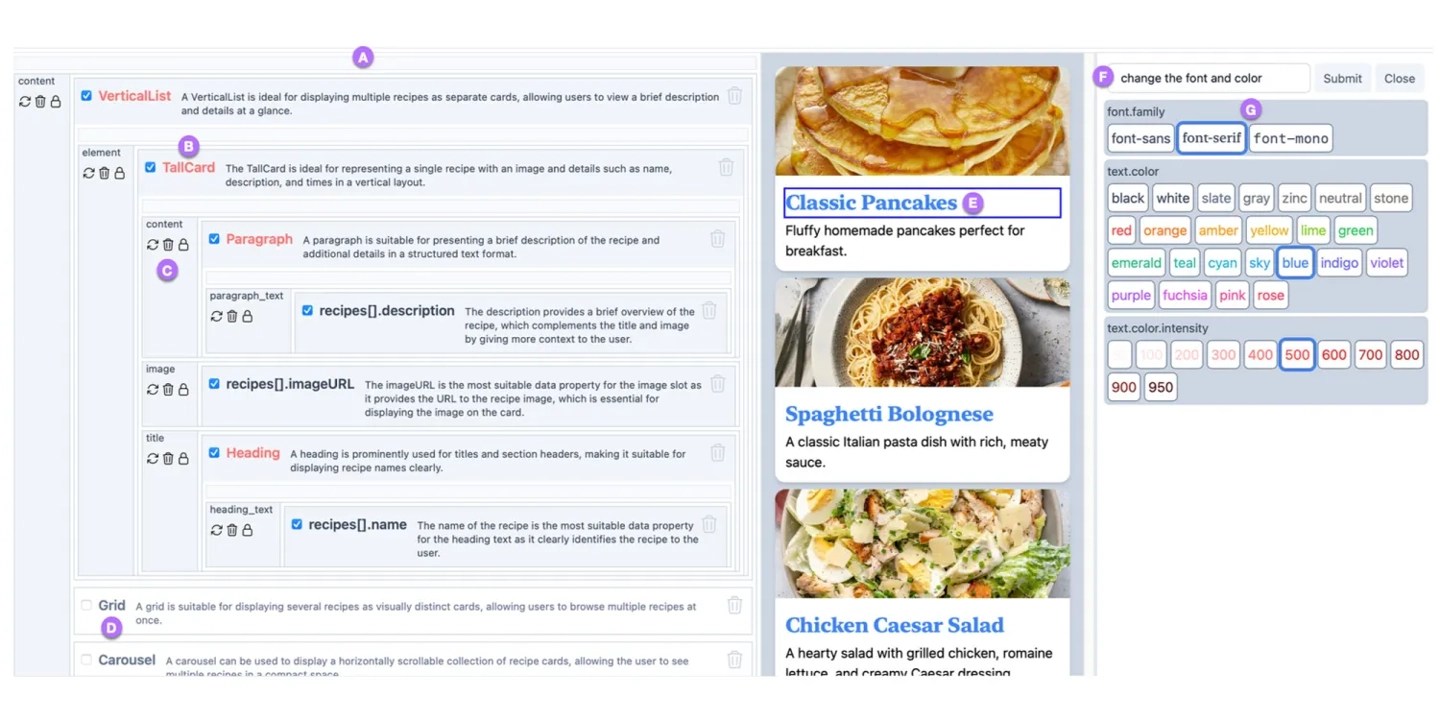 若需调整特定区域外观,系统会生成临时控制器,让用户无需重新输入提示词,修改语义相关表述。这种设计将 LLM 定位为提供建议的“助手”,最终决定权仍保留在开发者手中。