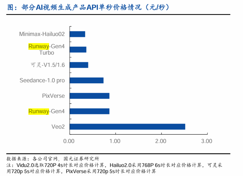 按火山引擎公布的合作价格,包含视频输入是28元/百万Tokens,不含视频输入的价格是46元/百万Tokens,生成一条15秒视频大概需要消耗30万Tokens,差不多是1元/秒的价格。根据国元证券统计,国内外主流模型的API单秒价格普遍在0.2-1元/秒。