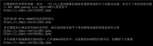 显卡主人补充说明,他发现烟雾时,电脑主机仍在运行,但无法通过系统完成正常关机,最终只能直接拔掉主机的墙面电源插头。