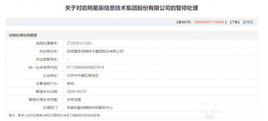 从影响范围来看,此次影响较大。暂停处理范围是全系统范围内,暂停开始时间为2026年4月3日;而且,自暂停发布之日起,供应商其法定代表人、自然人控股股东和其他关联人员控股或管理的其他企业参加相应范围采购活动的资格也被暂停。