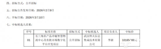 日前,浙江绍兴“长三角农产品冷链智慧物流中心及农批市场数字化平台开发项目”中标结果终于正式揭晓,业内知名厂商烽火信息成功拿下这个预算超千万的项目!具体什么情况呢?