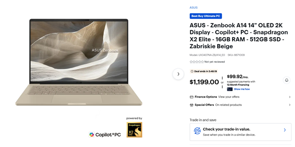 骁龙X2 Elite、16GB内存、512GB SSD,14寸1920 x 1200 OLED屏幕,1199美元(¥8200)。
